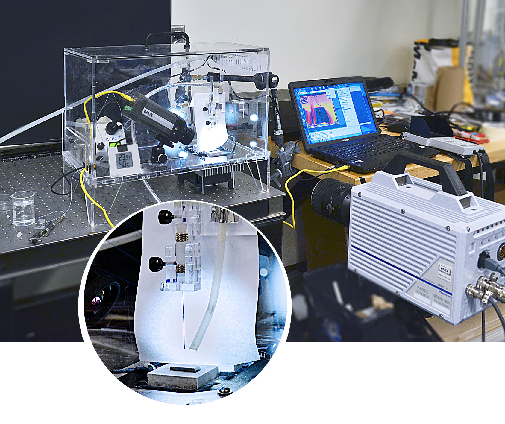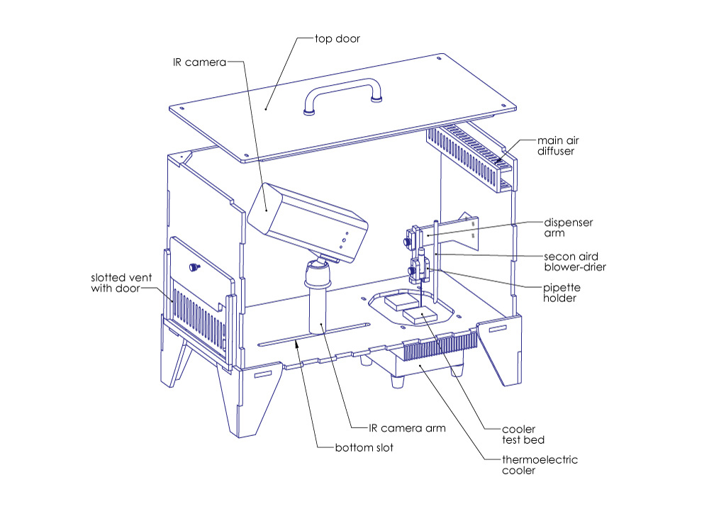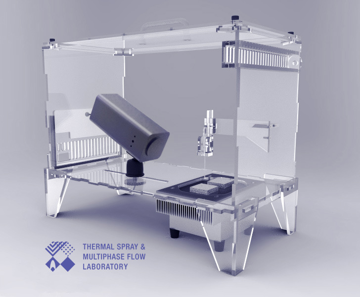 Experimental apparatus for NSERC / Honours research project at Thermal Spray and Multi-phase Flow Laboratory, Concordia University. The chamber is designed to perform observation of freezing mechanics of water droplets on surfaces designed for aerospace application. The project resulted in a comprehensive study of unique phenomena of supercooled water droplet freezing stages using video footage and IR thermometry.